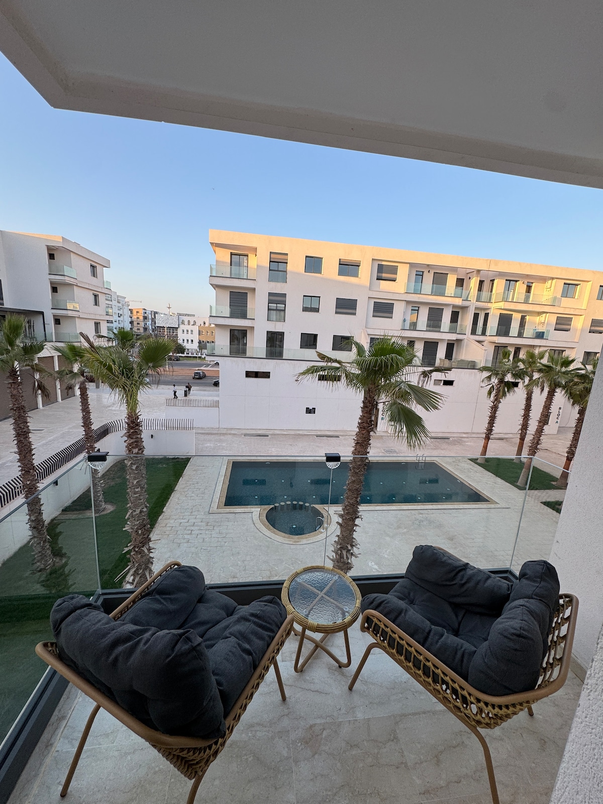 apartment, in the best area of Agadir, short walk from the beach and a short walk from the shopping center. There are some amazing and clean cafes / restaurants within walking distance of the apartment. You are secured 24 hours a day and access to 2 pools. an amazing place to live with an amazing sense of community. Suitable only for Professionals /couples and families /No men’s group will be accepted.