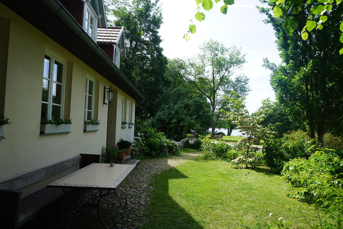 Vor den Türen Schwerins liegt unser über 100 Jahre altes Wohnhaus mit angrenzendem Neubau mit zwei individuell gestalteten Ferienwohnungen. Die "Gardenview" eignet sowohl für Geschäftsreisende, als auch Individualreisende. Sie befindet sich im 1. Stockwerk und bietet einen lichtdurchfluteten Wohnraum mit Kingsizebett, Schreibtisch und kleinem Essbereich mit Hochstühlen. Eine angrenzende Küche, sowie ein separates Duschbad runden die Wohnung mit Gartenblick ab.