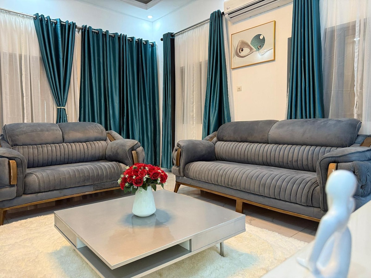 Bienvenue dans votre havre de paix idéal pour se retrouver en famille, entre amis ou pour un séjour professionnel. Pourquoi vous allez l’adorer ? •3 chambres avec leurs salons et 4 canapés convertibles •Une déco mêlant élégance et touches africaines. •Une cuisine ultra-équipée •2 terrasses pour se détendre ou recevoir. À l’extérieur, laissez-vous séduire par un grand jardin privé avec une pergola équipées de: •Balançoire pour les enfants •Barbecue pour des soirées inoubliables