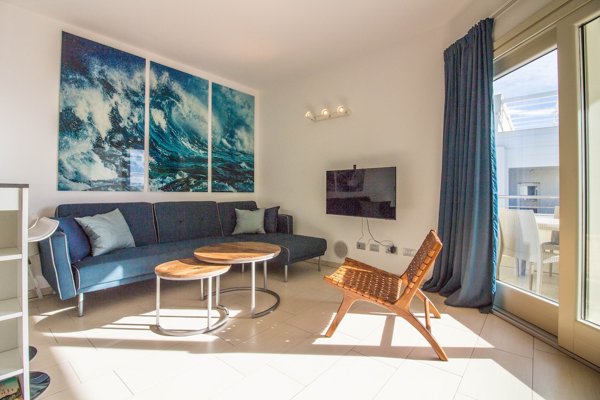 Bright top-floor apartment with breathtaking views over the Gulf of Aranci, just 300 m from the stunning beaches. It features 2 double bedrooms, 2 modern bathrooms, a spacious living area with fully equipped kitchen, and two terraces overlooking the sea—perfect for breakfast with a view or relaxing evenings. Fast Wi-Fi, air conditioning in every room, Smart TVs, and quality linens included. Ideal for families or couples looking for comfort and relaxation by the sea.