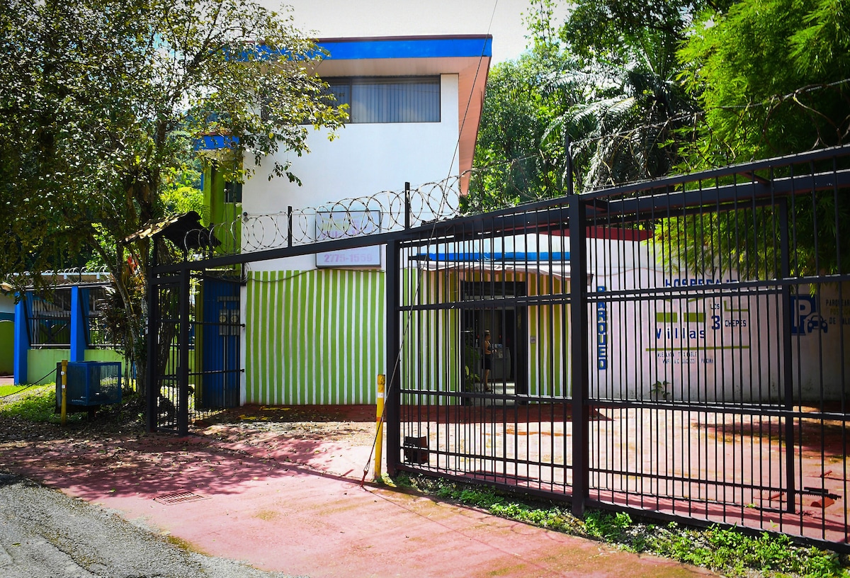 Relájate con tu pareja en un espacio acogedor, con aire acondicionado en el dormitorio, hecho para compartir tiempo de calidad en el jacuzzi o viendo películas en la pantalla grande del proyector, en un sofá cama tamaño king de memory foam, baño con agua caliente, cocina full equipada, refrigerador con ice maker, comedor y espacio para trabajar con internet de alta velocidad. También contamos con parqueo dentro de las instalaciones, piscina compartida, patio con zonas verdes compartidas.