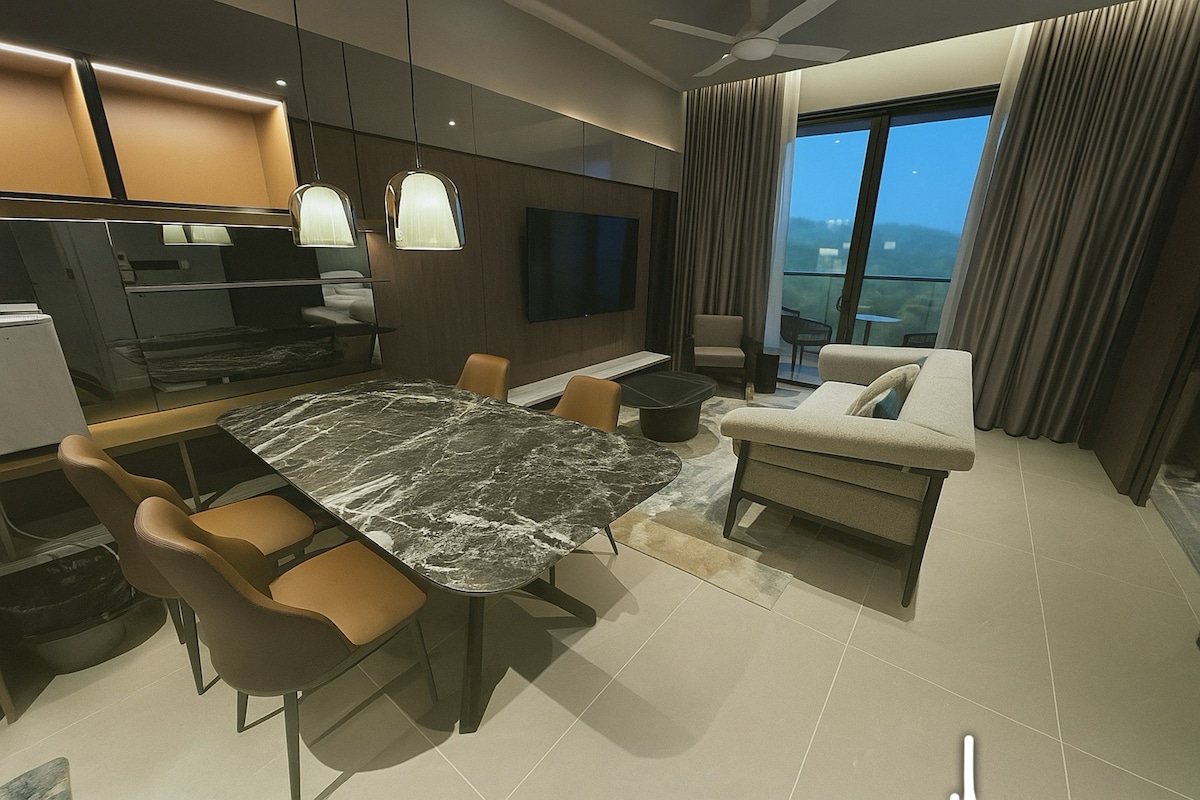 1-Bedroom at OOAK Suites @ 163 Retail Park, Mont Kiara. Sleep up to 3 guests with 1 Queen + 1 Single. Perfect for business trips, couples or small families. Hot Tub, Wi-Fi, smart TV, air-conditioning, light-cooking kitchen and fresh linens. Walk to 163 Retail Park / Plaza MK / 1 Mont Kiara. Secure residence with self check-in.