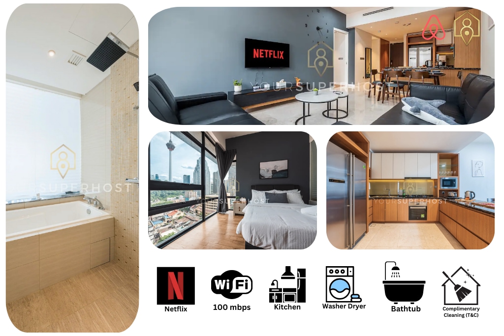 🛖Welcome to Anggun Residences hosted by YourSuperhost. Anggun Residences thrives in the vibrant hustle and bustle of Kuala Lumpur's Central Business District. What guests like the most in Anggun Residences? 【1】Family-Friendly Oasis Easy access to a vibrant food street and iconic landmarks. 【2】KL Central View Enjoy panoramic KLCC views of every tower from the top floor within the building. 【3】Location 5min walk reach Monorail Stations, LRT Stations, Shopping Malls, Food Courts, Heritage Row
