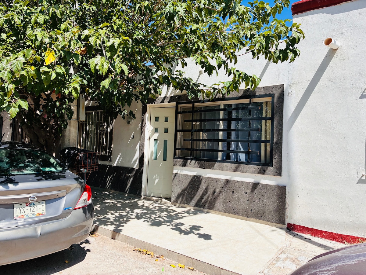 Bienvenido! Estarás como en casa, en un espacio súper acogedor con todas las comodidades y en una cerrada muy tranquila con vigilancia 24/7. No se permiten fiestas, es un fraccionamiento tranquilo y familiar. Equipamiento: minisplits frío/calor en planta baja y habitación principal, en la habitación secundaria minisplit solo frío, dos pantallas con tv por cable, netflix y youtube, lavasecadora, estufa, microondas, cafetera, wifi, asador y todos los utensilios de cocina que necesites.