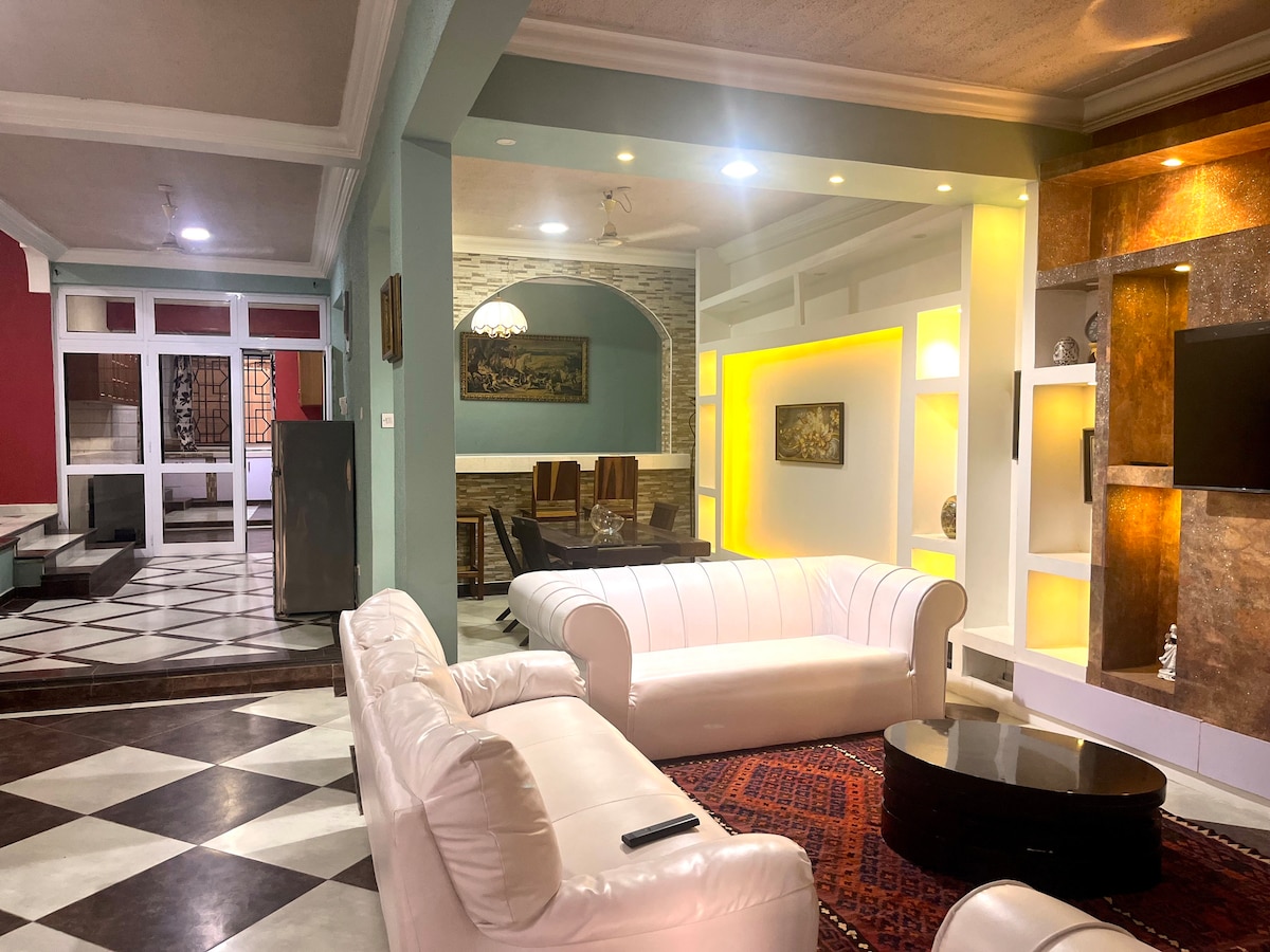 Fully renovated 2-bedroom, 2-bath duplex in a standalone home. Features a full kitchen and spacious living area. This is a private unit with its own separate entrance—no shared spaces. Equipped with modern and stylish amenities. Conveniently located just within 15 minutes from the airport and 20-25 minutes from Labadi Beach and close to popular spots like Rose Garden, Vine, Kukun, Luna Rooftop Bar, and many other top restaurants and attractions.