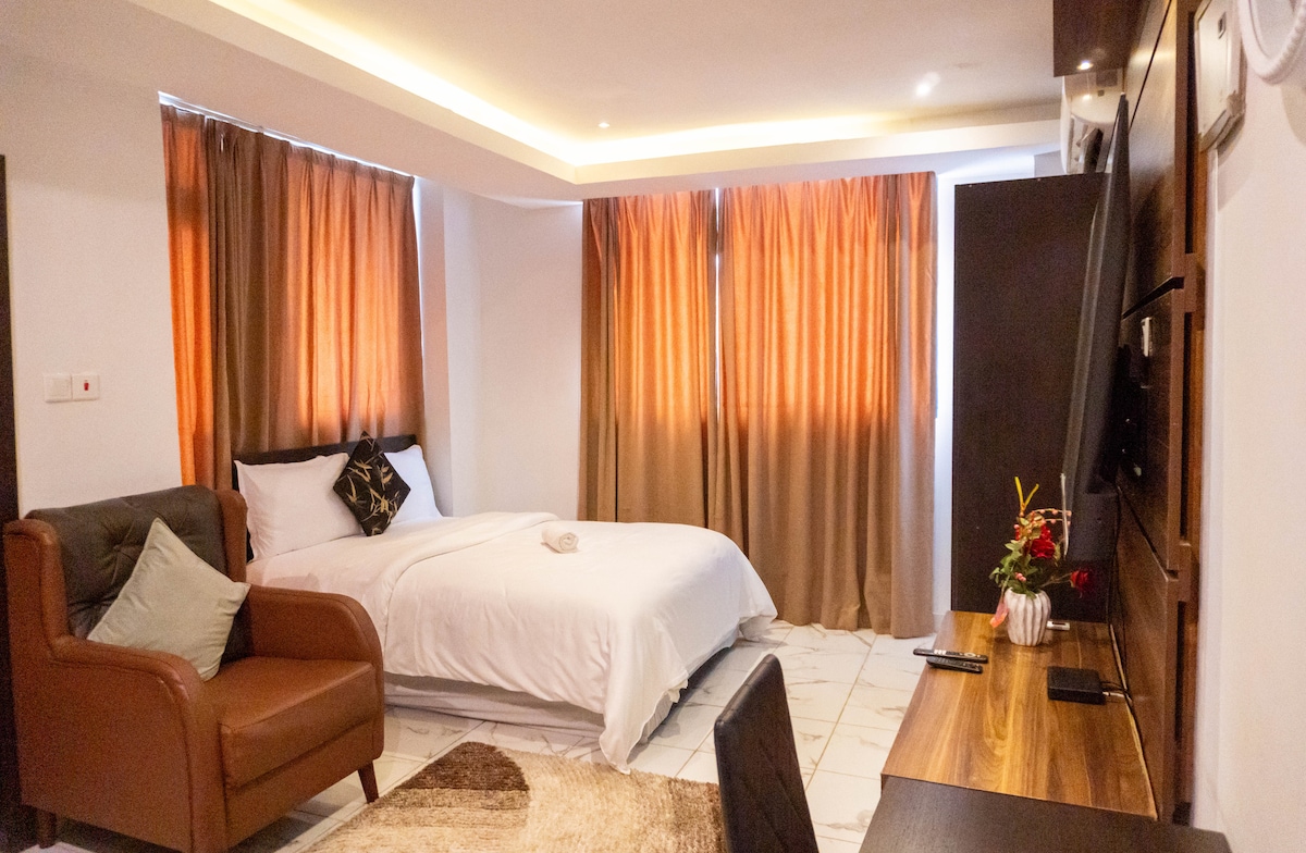 Experience luxurious living in the heart of Accra with Solaris Luxury Suites. Our high-end apartments offer a sophisticated and stylish retreat for travelers seeking a premium experience. Each suite features a spacious bedroom and en-suite bathroom, a fully equipped kitchen and a living area. access to exceptional amenities including a swimming pool, gym. Enjoy stunning views of Accra's skyline from our premium location, with easy access to the city's top attractions, restaurants & nightlife