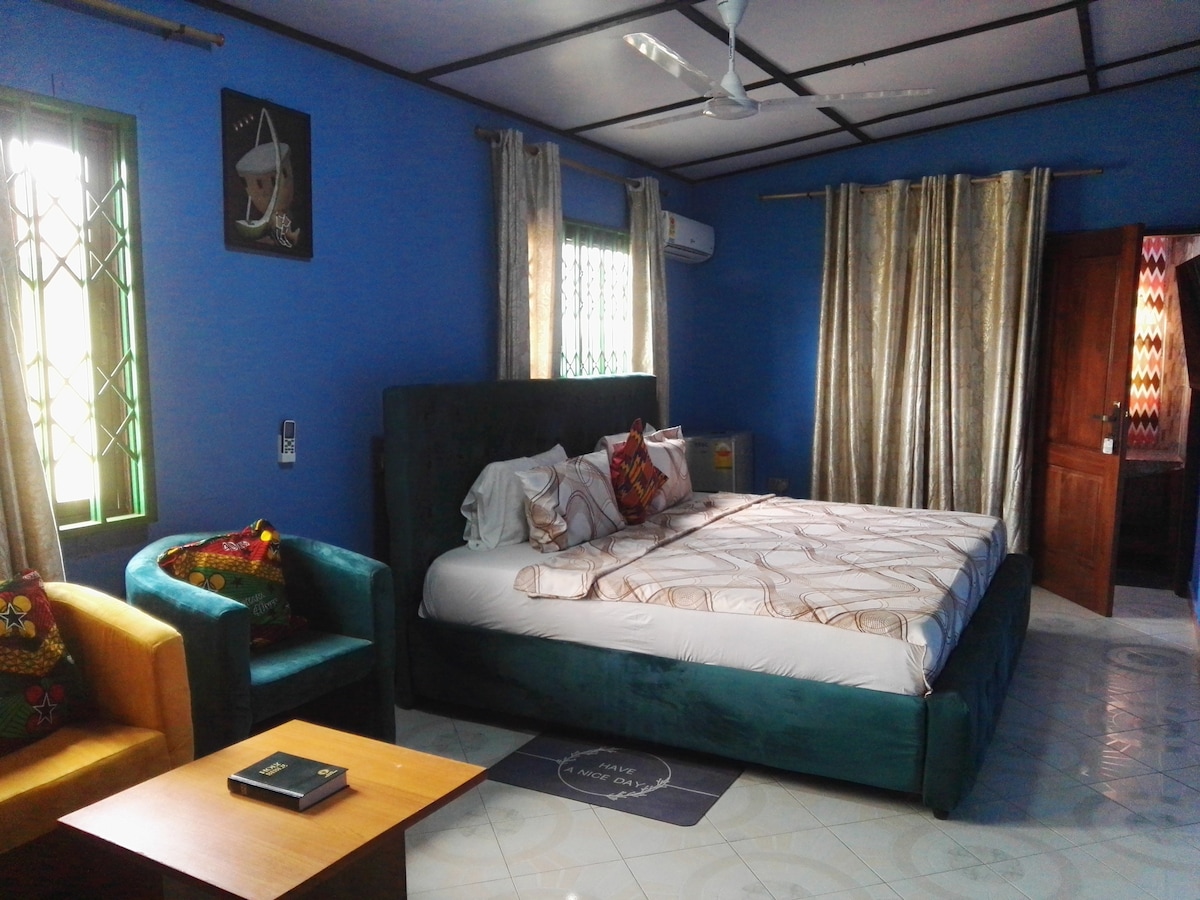 In our lovely area, you will find out what makes it so special. You will even find our local and highly regarded Bortianor beach. Just 10 minutes away, you will find bojo beach, West Hills Mall, and amazing local food. And just an hour away is the iconic Elmina Castle in Cape Coast. Please note we're running holiday specials starting from November 28, 2021. We've discounted our prices for our potential guests. We're excited to host you, and want our prices to reflect that!
