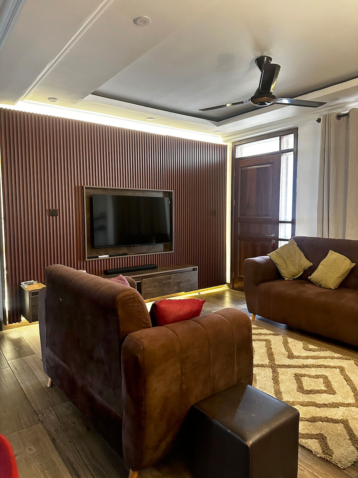 Fully renovated 2-bedroom, 2-bath duplex in a standalone home. Features a full kitchen and spacious living area. This is a private unit with its own separate entrance—no shared spaces. Equipped with modern and stylish amenities. Conveniently located just within 15 minutes from the airport and 20-25 minutes from Labadi Beach and close to popular spots like Rose Garden, Vine, Kukun, Luna Rooftop Bar, and many other top restaurants and attractions.