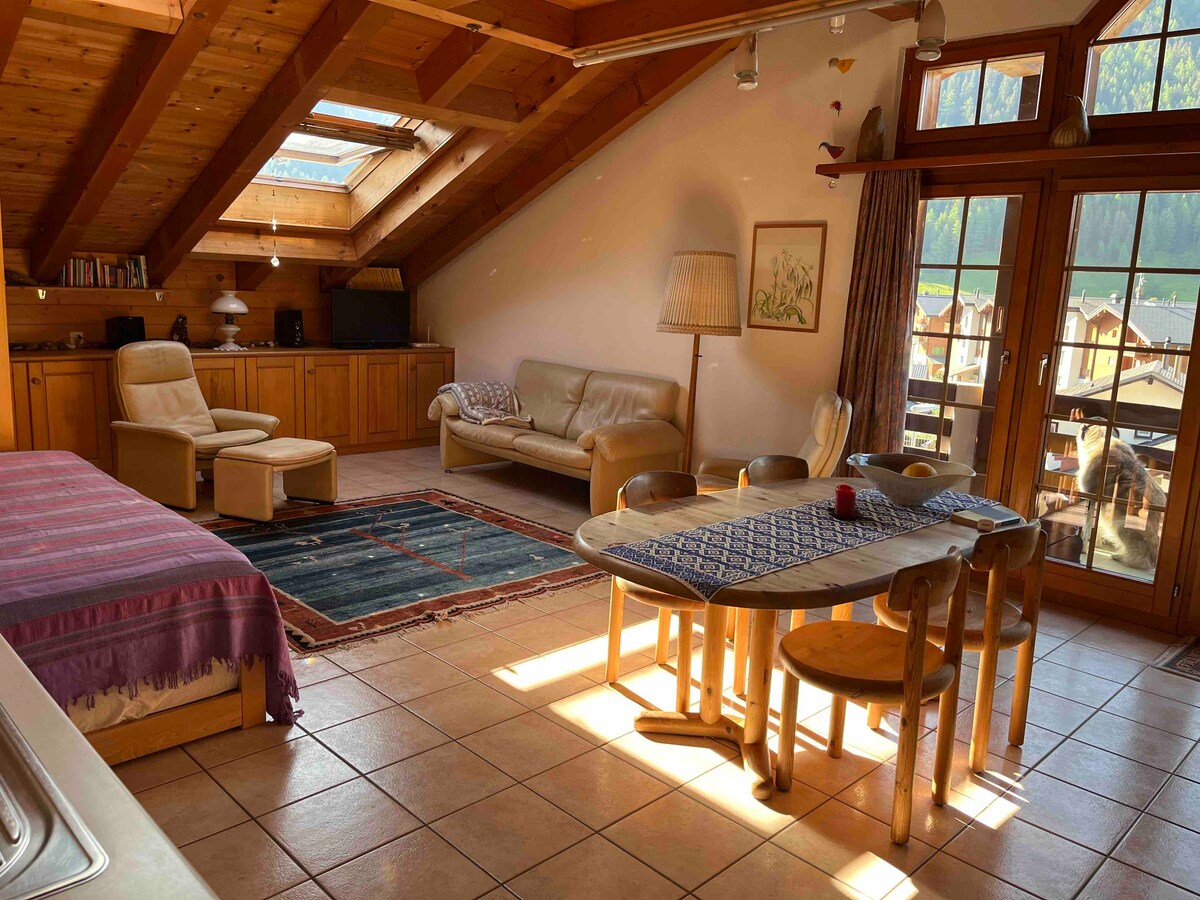 Tolles, sonniges, gepflegtes 2.5 Zi Studio mit Galerie und Balkon im obersten Stock mit Wohnbereich, Küche, Galerie und Bibliothek, TV und Internet. Schöne Aussicht auf Dorf und Berge. Zentral, neben Sportgeschäft und Hotel (gute Küche). Geeignet für 2-4 Erwachsene/Familie (max. 5) 2 Betten (90x200), ein Queensize Bett (180x200) auf der Galerie. Seperates Bad/Douche. Parkplatz / Lift zur Wohnung. Postauto/Zug (2/10min). Skiraum/Waschküche. Winter: Neben Loipe und Kinderskilift.