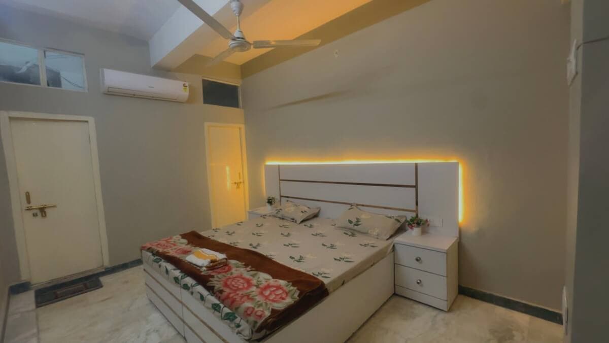PLEASE READ THE HOUSE RULES BEFORE BOOKING. Ideal for family, women/solo travellers & couples - safe, peaceful, and homely. A subtle & peaceful house enjoy a spacious green patio, two AC bedroom, kitchen with essentials, workspace, Wi-Fi, and carrom for recreation. This is a family home, not a hotel. We provide a clean, comfortable and homely stay with basic amenities, but not hotel-like services. For security, the main gate closes at 10:30 PM. NO LOCALS & VISITORS from Lucknow are allowed.