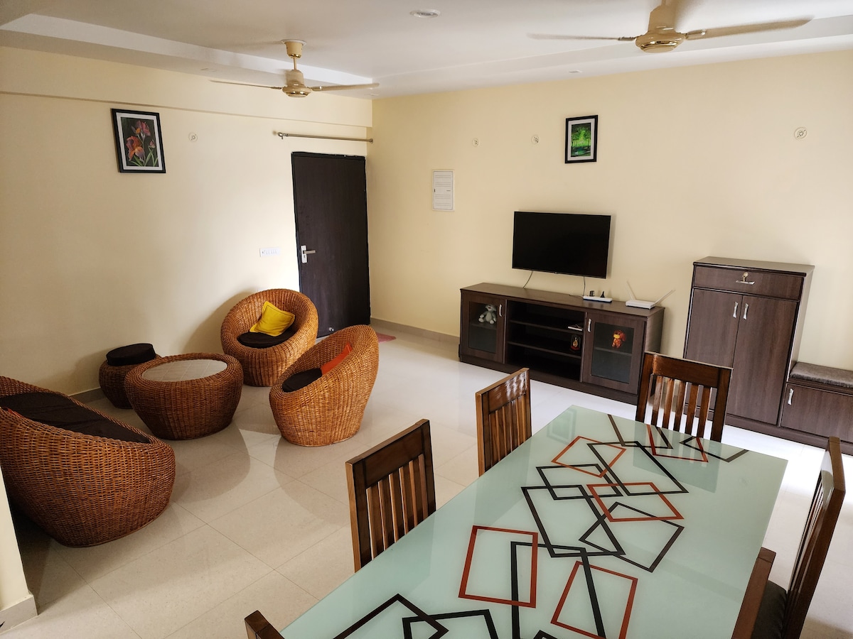 Welcome to your perfect 2bhk @ home away from home in the heart of Lucknow at Emaar Gomti Green is designed to provide you with a comfortable and cozy stay, complete with excellent Housekeeping. As you step into this modern apartment, you'll immediately notice the inviting ambiance and thoughtful amenities. The air-conditioned room ensures that you stay cool and comfortable, no matter the weather outside.Loud music is not allowed at the property.