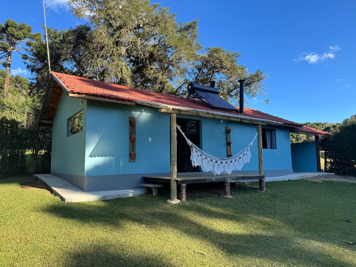 Casa de 80 m2 com deck, cercada. Possui ofurô, lareira, fogo de chão, dois quartos (uma suíte), sofá cama médio na sala para casal, mais um banheiro completo no corredor. Os quartos tem cortina blecaute, a sala não. Comporta até 6 pessoas. Além de ser uma casa aconchegante, proporciona conexão à natureza, observação do gado no pasto e pássaros, sentir a energia do lindo por do sol deste lugar!! É fornecido roupa de cama e mesa. NÃO SÃO FORNECIDAS TOALHAS DE ROSTO E BANHO.
