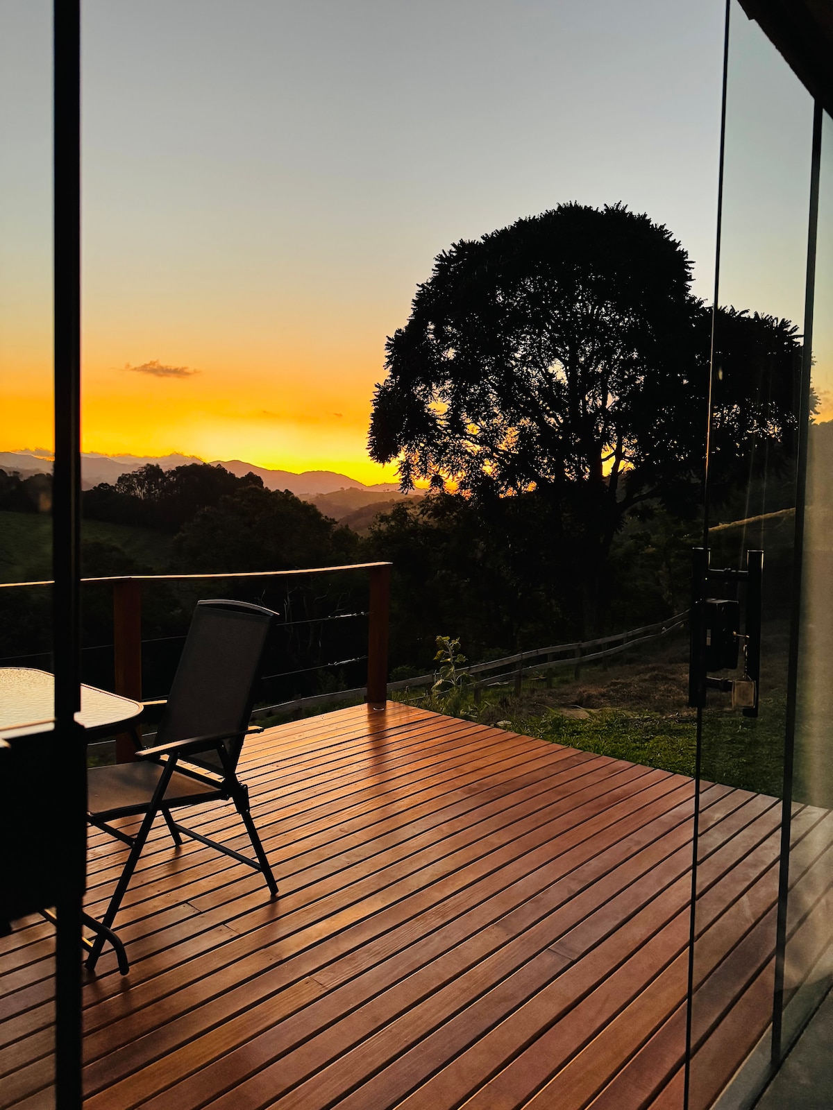 Descubra a magia da Serra da Mantiqueira nesta cabana projetada para que você possa contemplar o nascer do sol sem sair da cama. Venha relaxar em nosso spa aquecido, observar as estrelas na rede suspensa e balanço. A cabana possui um quarto integrado com uma aconchegante cama Queen. Na sala/cozinha, um futon super confortável acomoda mais dois hóspedes, tornando a experiência ideal para famílias. A propriedade também conta com trilhas e pequenas quedas d'água. Este sítio é um refúgio único.