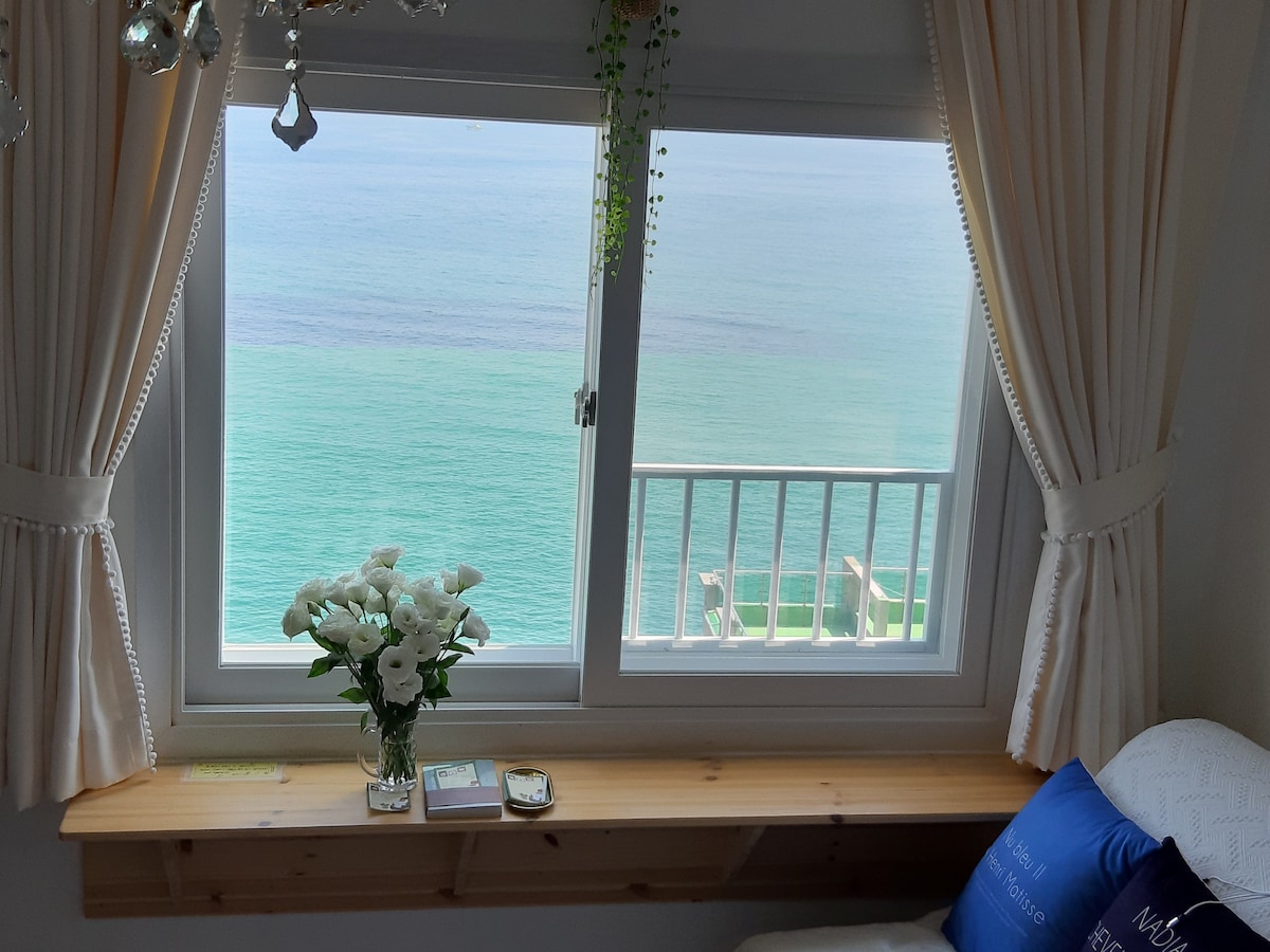 From the terrace, you can fully enjoy the ever-changing beauty of the East Sea, including the sunrise and sunset, with unobstructed ocean view. To enhance your stay, we provide Netflix w/ 65" TV and Harman Kardon Bluetooth speaker. If you connect the game console, you can enjoy over 3,000 nostalgic games. We have various lighting and blankets prepared to create a romantic atmosphere indoors and outdoors at night. For a comfortable sleep, we provide hotel-style bedding and blackout curtains.