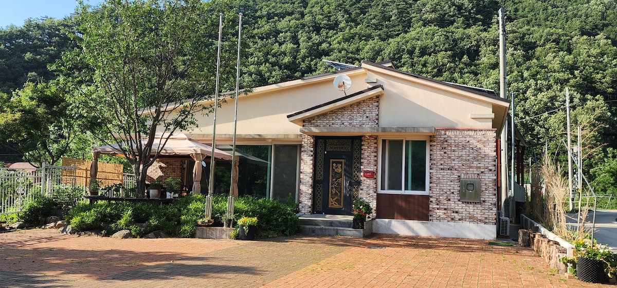☆☆봄이면 정원에 꽃이 만발한 정원을 가족과 산책하고, 여름이면 계곡에서 흐르는 청량한 물소리와 함께, 야외 어린이용 수영장을 비용없이 단독으로 사용할수 있고 가을이면 계곡에서 불어오는 시원한 바람과 울긋불긋 단풍을 즐기고 겨울이면 모닥불에 고구마 밤도 굽고, 비용없이 사용할수 있는 바베큐징비를 사용할수 있지요. 눈이 내리면 는내린 오솔길을 친구와 걸어보아요 ☆☆23평의 친환경 목조주택에 편의시설이 완비되어 있습니다.무더운 여름, 거실과 안방에 에어컨과 선풍기2대가 있고 침대엔 듀라텍스 냉감쿨패드도 준비되어 있습니다. 또한 햇반을 사오시지 않게 쿠첸밥솥과 쌀도 냉장고에 준비해 놨습니다. 언제든 먹거리만 준비해 오셔서 편안한 힐링 의 시간을 보내세요. ☆☆가까운 거리에 화양계곡, 설운산, 공림사,산막이 옛길등이 있고 5분거리에 농협을 비롯 대형마트,청천재래시장,숲카페, 맛난 식사를 할 수있는 식당이 있습니다.