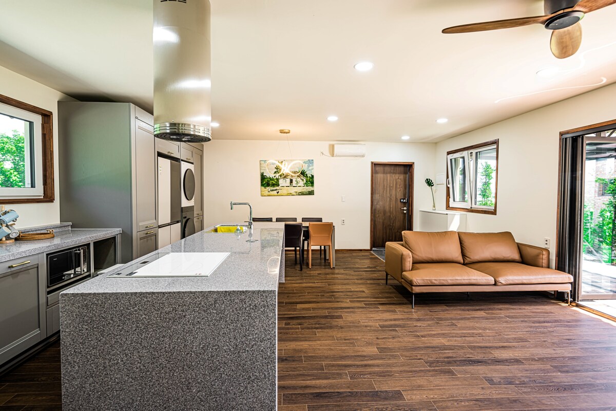 맑은 공기가 중요해진 요즘 저희집엔 산속에서 뿜어주고, 걸러준 신선한 공기가 가득합니다. 상업적인 공간이 아니라 세련된맛은 없어도 정갈한 숙소를 단독을 사용하실 수 있어요. 넓은 정원과 아름드리 조경수 밤하늘 쏟아지는 별빛은 덤으로 얻을수 있어 조용한 휴식을 원하시는 분에게는 딱!일 것입니다. 자동차 전용도로에 인접해 무주IC와는 10여분이면 도착가능합니다. 저희는 부부와 나무,밀크 애견과 함께 살고있으며, 게스트와 교류를 좋아 합니다. 관광지가 아닌 숲속의 집이 장점이라 시골 친적집 같은 느낌으로 오시면 지친심신을 위로받고 돌아가실 수 있으리라 자부합니다. 숙소는 도심의 1.5룸 구조로 넓은거실과 주방/아담한 침실/화장실로 되어있어요. 숙소에서 단독으로 요리가 가능하도록 기본 그릇, 도구가 다 준비되어 있습니다. 오셔 집안에서 마음껏 놀다가시는걸 환영합니다.