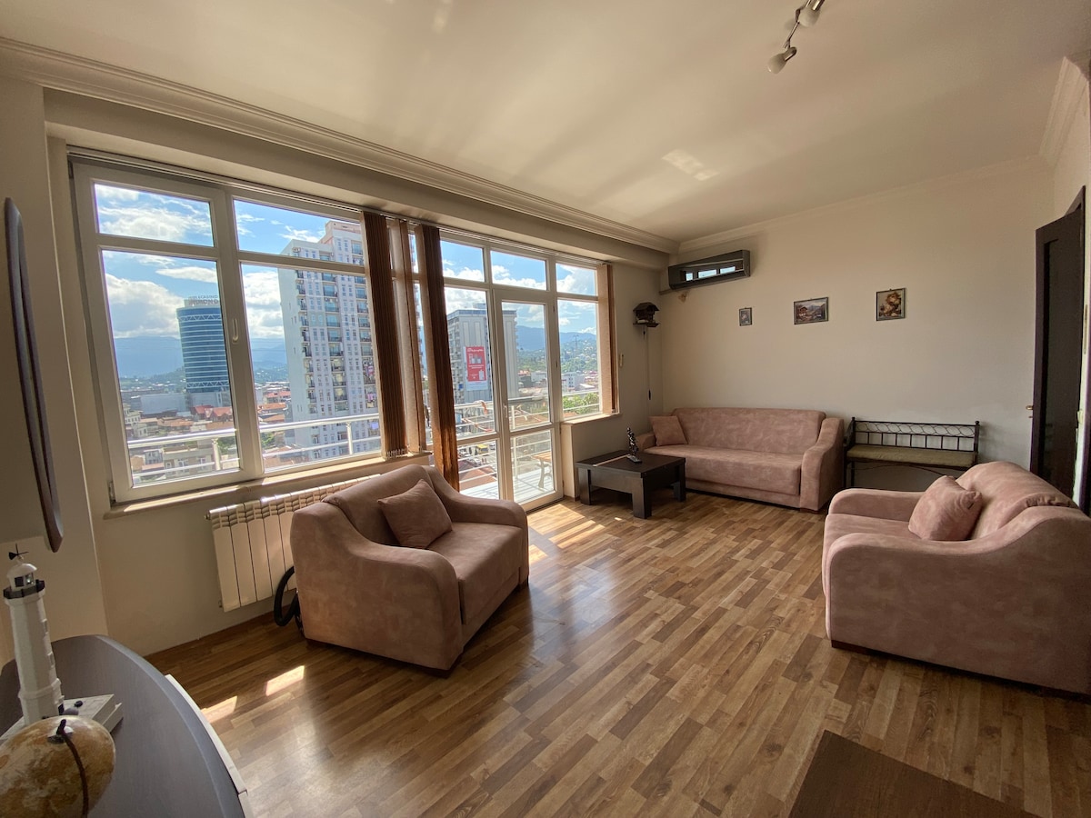 Enjoy a memorable visit when you stay in this unique place. The apartment is located 10 minutes walk from the sea, and 7 minutes walk from the main park. Located in the middle of old and new Batumi. There are restaurants, fruit markets nearby. The building is not so beautiful and modernized from the outside, but the apartment has enough conditions to feel comfortable.