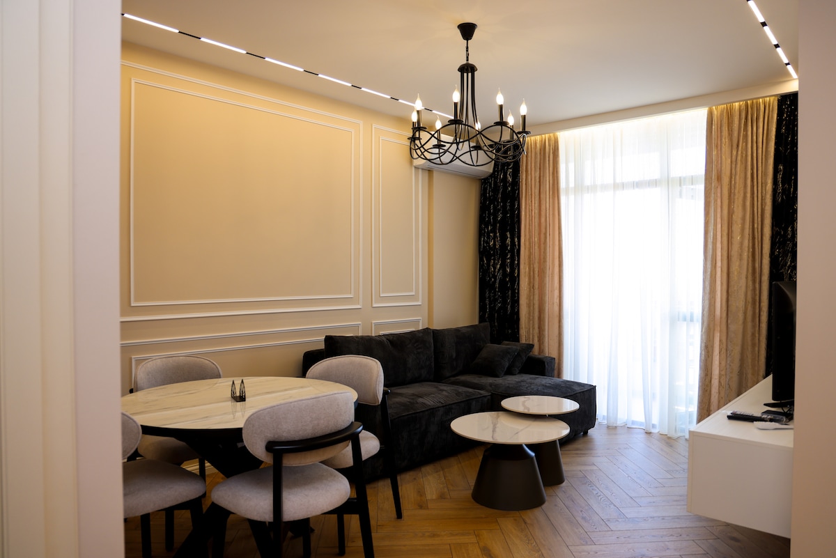 Batumi Plaza is the entrance to Old Batumi. Your apartment is facing the sea and mountains. The sunrise is there to greet you every morning. Nearby you can find all types of market places and malls. It is in 2 min. walk from Batumi Cable and 5 min. walk to Batumi most popular sightseeing places like Alphabet Tower, Ali and Nino and many other. The most popular beach is in 7 min walk from the apartment. Have an unforgettable rest at the Batumi Plaza.