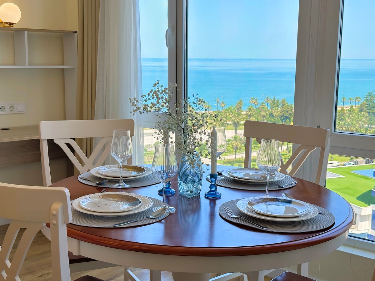 Stunning Apartment in a new Skyscraper (commissioned in 2023) with breathtaking panoramic sea views , in the same building with Ramada Plaza Hotel, Casino Billionaire , Victoria SPA complex, restaurants, a Spar shop. Near the beach and dancing fountains on Lake Ardogani. The apartment has everything you need for a comfortable stay, including a kitchen, cooking utensils, refrigerator, washing machine, air conditioning, iron, ironing board, hair dryer, large TV. Super comfortable 180 mattress.