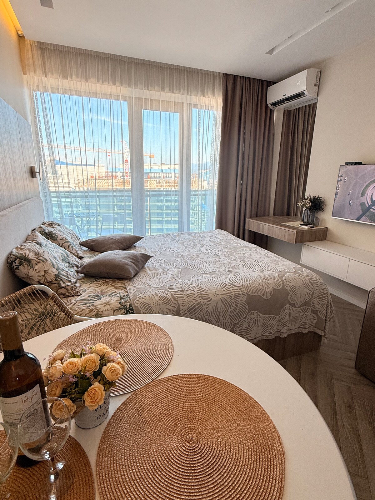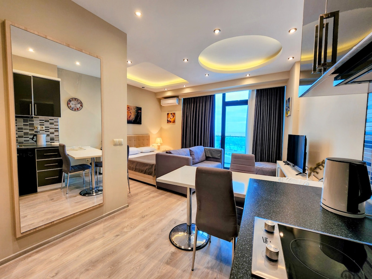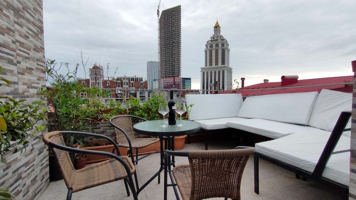 Enjoy a stylish stay in the city center, overlooking the mountains and the sea. A new modern renovation in the loft style, where everything is thought out. Convenient location 5 minutes from the sea, between old and new Batumi.