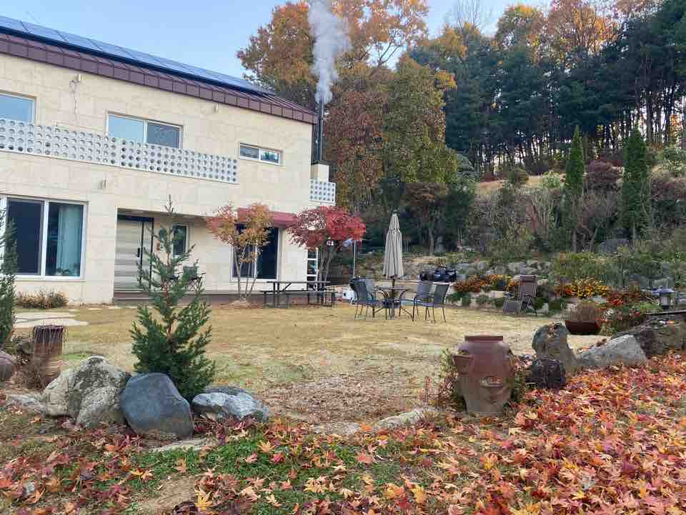 We have spacious Garden with lovely pine trees and seasonal flowers. You can feel healing and relax with our lovely calm garden. We have also small farm growing ingredient fruits. you can pick & enjoy eating for breakfast in summer season. You can take a walk along the riverside path near our house and enjoy water skiing and paragliding. Public transportation is also available. It's a 10 - minute walk from Asin Station on the Gyeongui-Jungang Line. Pick-up from Asin Station is also available.