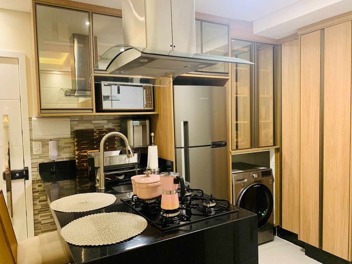 Abrace o descanso em um kitnet tranquilo e bem localizado. A 50 metros da Praia, próx ao Shopping, com os melhores bares, restaurantes e comércio da região! Excelente para Home Office , completo e compacto com : ✅fogão, geladeira, ventilador de teto e portátil , filtro, air fryer, microondas, forno, chuveiro, sanduicheira, cafeteira. ✅cama de casal , sofá-cama. ✅copos,talheres, toalhas, lençóis, travesseiros. ✅TV smart e wifi rápido, ideal também p/ Home Office. ✅Plataforma Streaming.