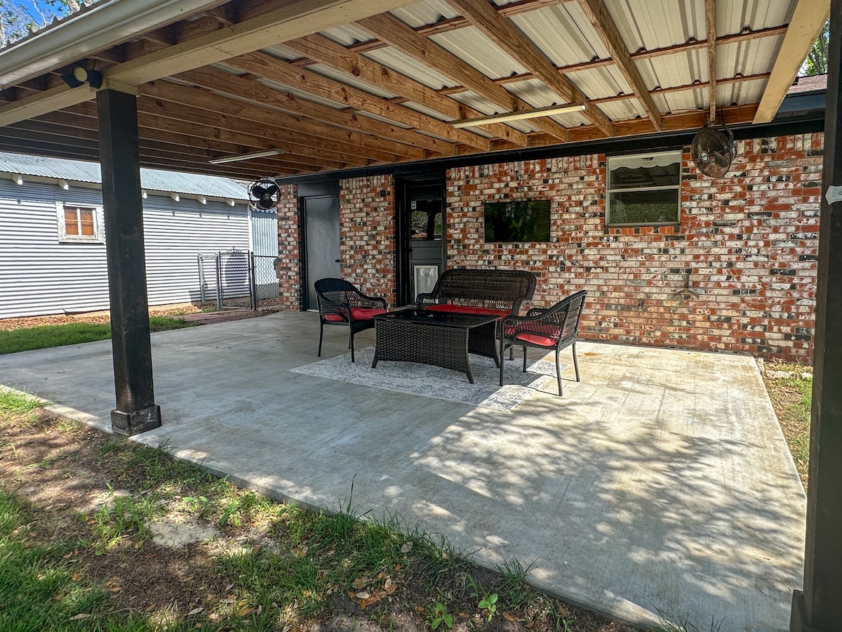 Make some memories at this unique and family-friendly place. Brand New on the market. Completely Renovated! New AC’s, beautiful furniture, fully stocked kitchen, washer dryer, TV, internet, video game system, locally owned by disabled veteran, 3 bedroom, 2 bath, master has King Bed, huge enclosed back porch, 2 block walk to downtown Kingsbury, and lots of outdoor space!