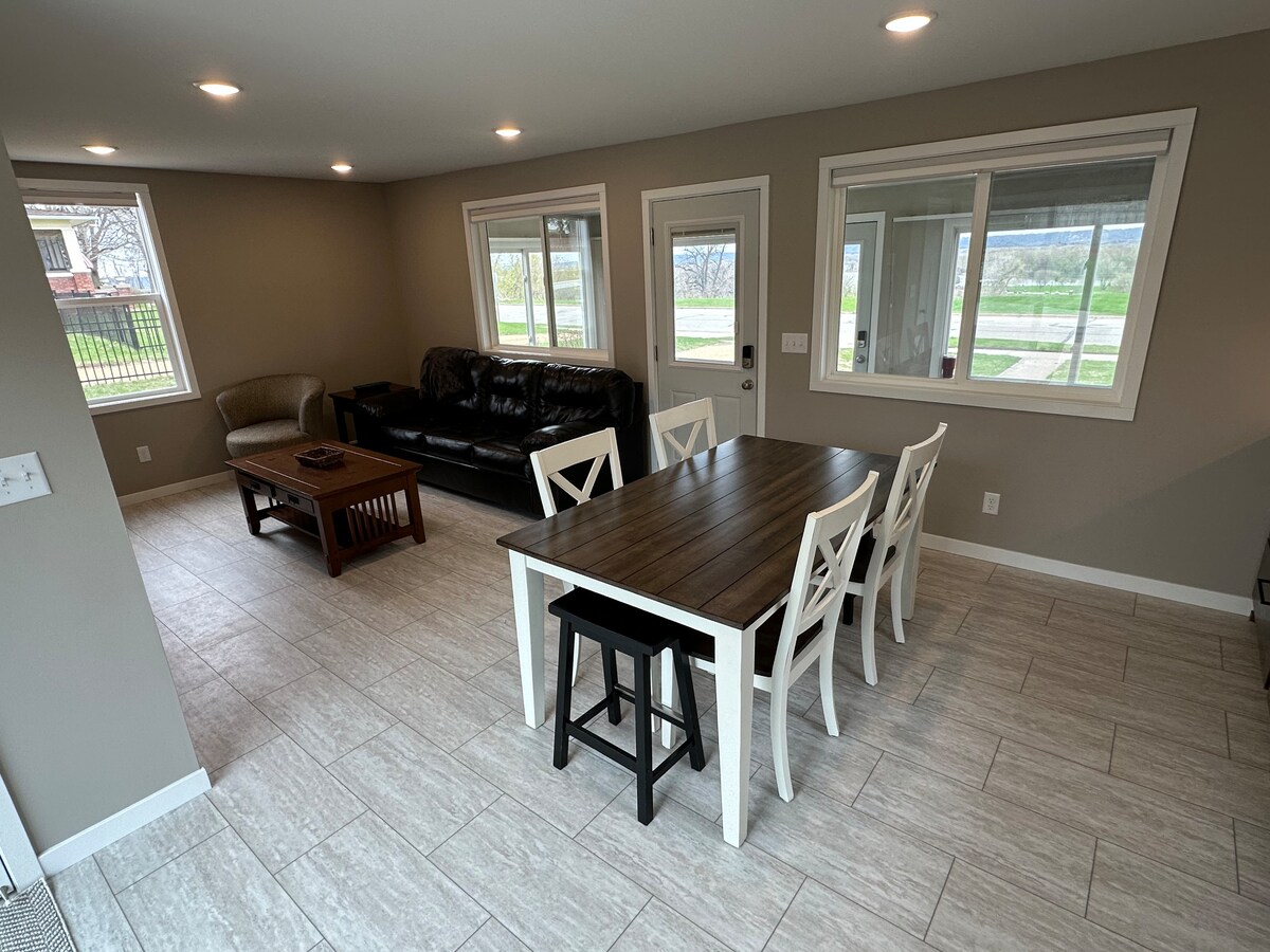 Discover your perfect family/group retreat: *beautifully remodeled farmhouse *nestled directly across from the Zumbrota Golf Course *sleeps 9 guests 4 queen bedrooms | single bed in family room *relax in the cozy living room *family room on the 3rd floor *hottub, expansive deck, and enclosed screened in porch *30 min to Rochester(Mayo Clinic, Apache Mall, and more) *Approx 1 hour to the Twin Cities (Minneapolis & St. Paul), offering major attractions, sporting events, and cultural experiences