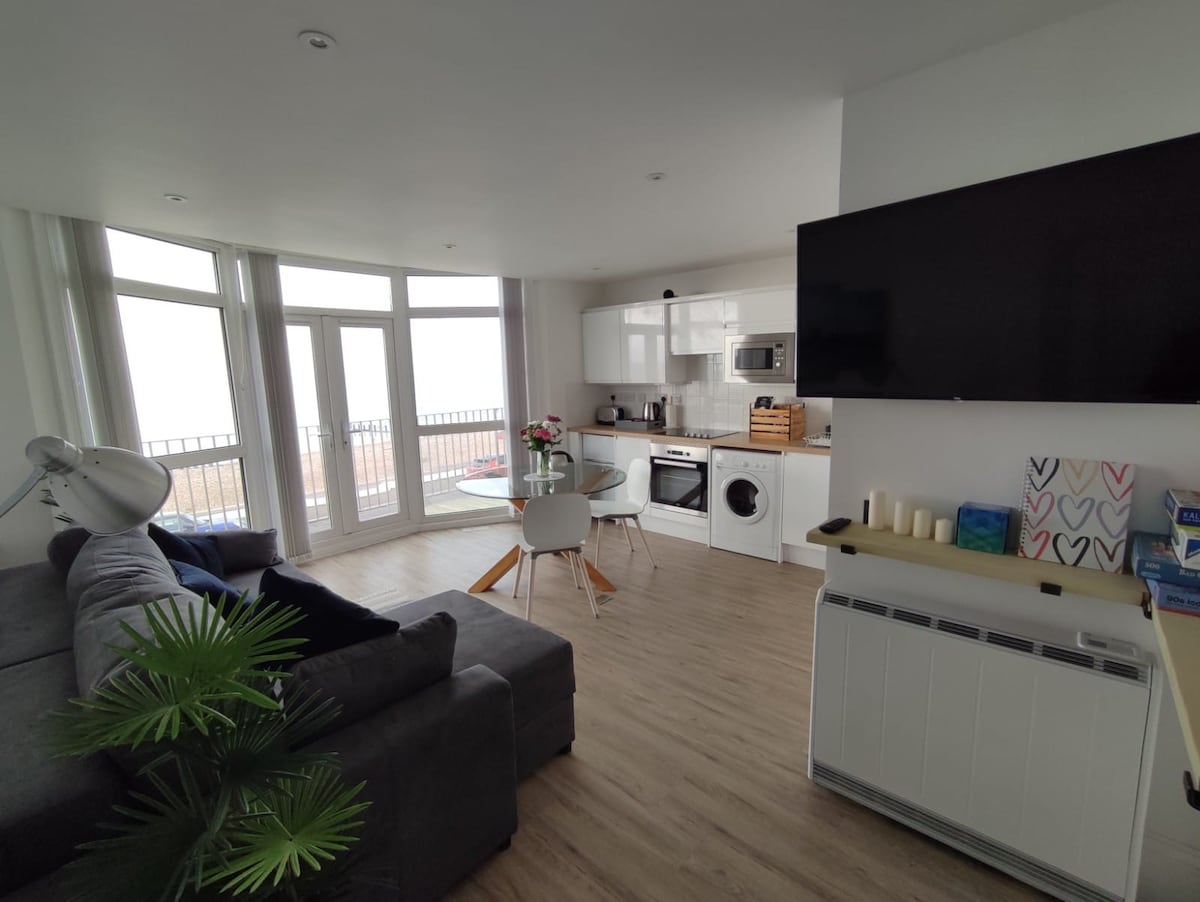 The Beach House, West Wittering Beach. An airy, bright home, shares a garden with the main house, sitting directly on the beach. A perfect getaway, an hour and a half from London. It is self-contained and is close to Goodwood, Chichester Theatre, great bike routes, local pubs and, of course, the sea is on your doorstep. Open-plan fully-equipped new kitchen, big comfortable sofa, TV/Wifi, separate shower room. Super king double bed, plus 2 single beds on large mezzanine floor with a sea view.