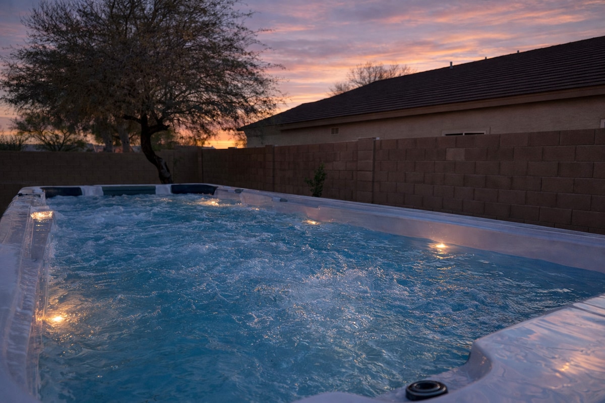 Dive into fun at this stylish Goodyear retreat! Lounge by the private pool & spa, enjoy the pool table, poker, foosball, shuffleboard, & plenty of space to relax or play. With 6 golf courses nearby, all Spring Training stadiums within 40 mins, State Farm Stadium in 13 mins, & EV charging, it’s the perfect base for families & golfers. <b>Plus, enjoy additional discounts on stays of 4+ nights.</b> Reach out anytime & ❤️ our listing to save it for later, we’re happy to make your stay unforgettable!