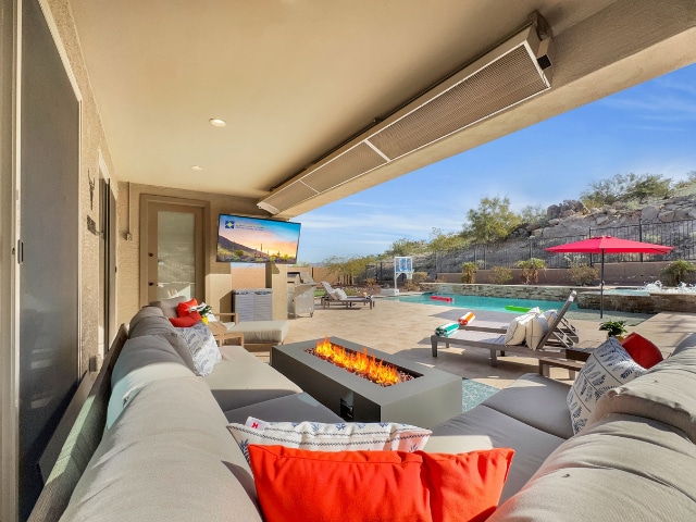 Enjoy this NEW LUXURIOUS Beautiful 3 bedroom house with resort style amenities. Nestled snug into South Mountain, this home is just 20 minutes from Downtown Phoenix/Tempe while being bordered by beautiful mountain trails! The house is fully stocked with the necessities, and beautiful turf for everyone to enjoy! From the Hiking Trails, Heated Pool, Hot Tub, Gym, Fire Pit, Bidet, Mountain Yoga Pad, and Ping Pong, with the fastest wifi, you will NOT want to leave this Home!
