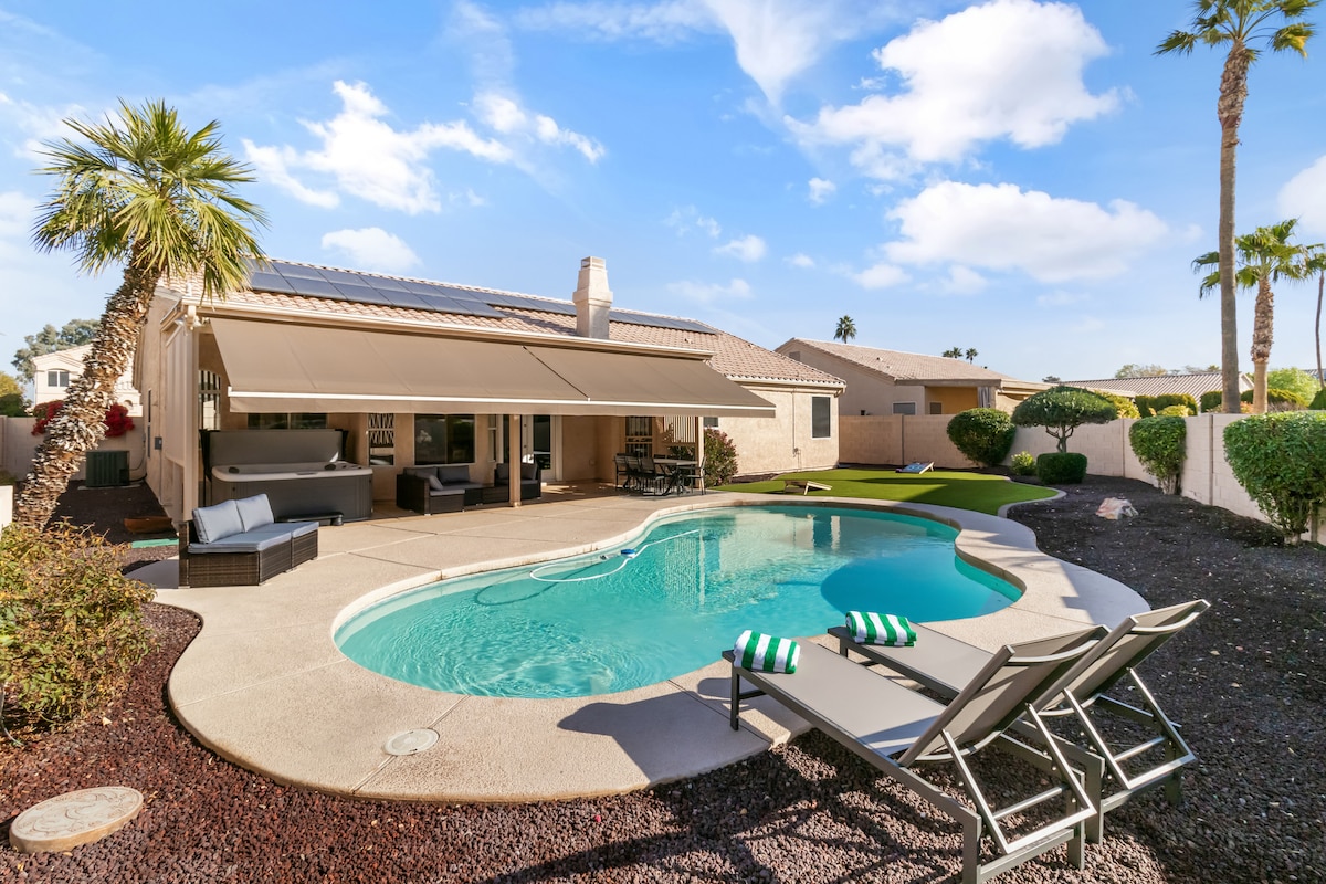 Welcome to your desert escape! This stunning new home offers everything you need for a relaxing, sun-soaked getaway including a sparkling private pool, contemporary design, and breathtaking mountain views. Nestled in a quiet, upscale neighborhood, the home features spacious living areas, stylish decor, and many comforts of home. Plus, we're always upgrading and improving to make your stay even better. Whether you're here to explore the Phoenix area or just unwind, this is the ideal home base.