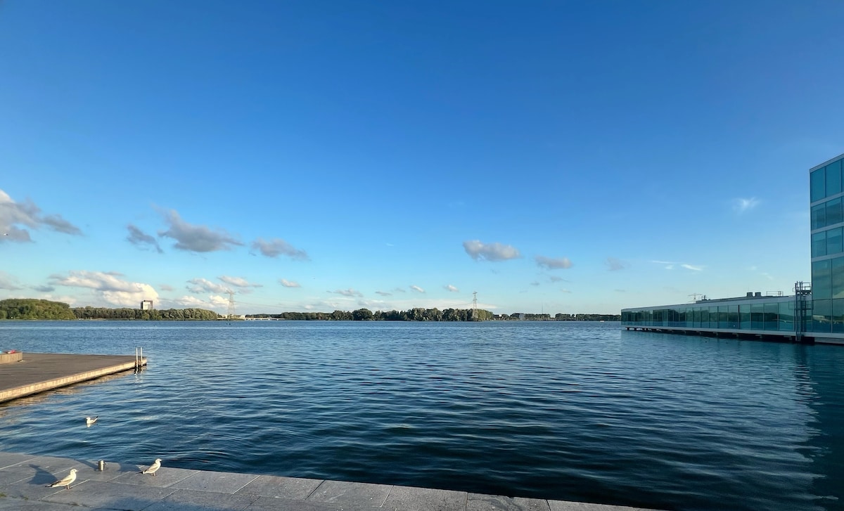 15 min drive to Amsterdam, our ground floor smoke free Suite + Deck at the waterfront. Next to Muiderslot and 2 min mooring YachtClub, 5 minutes walk to the historic city center with a lot of restaurants, bars and the ferry to the island of Pampus, with museum and restaurant! Spacious Suite with private entrance, bathroom ensuite, smart TV, SMEG fridge + Free parking! Beach 5 min, swimming, windsurfing and supping. Bicycles: rental bicycle at the station. Great views; UNESCO World Heritage area.
