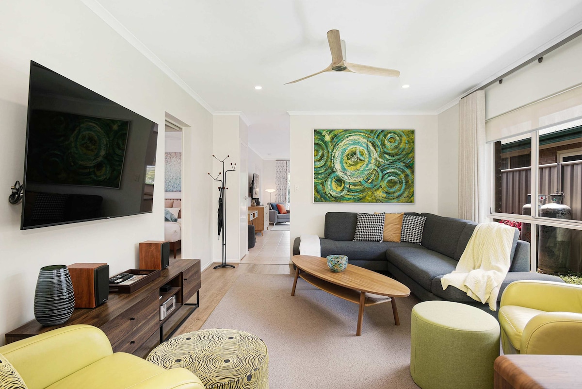 Set right on the peaceful waters of Encounter Lakes, this beautifully styled retreat captures the very best of coastal calm. Sunlight pours through the bright living area and flows seamlessly into the private backyard, where you can take the kayak out for a gentle paddle or fire up the BBQ for effortless lakeside dining. With split-system heating and cooling for comfort in every season, plus on-site parking, this thoughtfully designed home offers a truly serene waterfront escape.