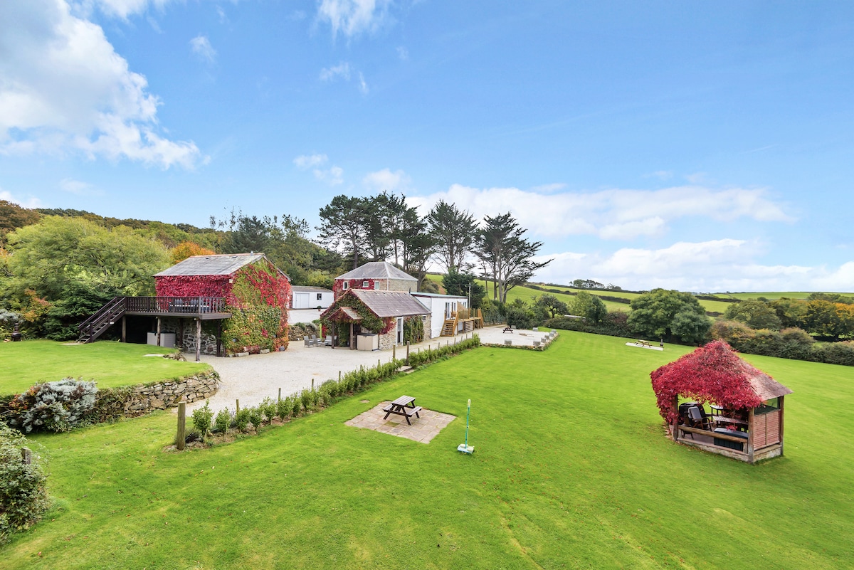 Private cottage with woodland & distant beach views, set in the heart of Perranporths peaceful valley, a short, flat walk to the famous white sandy beach, local shops & fabulous restaurants. Bay tree has its very own tranquil spa gardens to enjoy with a 7 seater Hot tub, ice plunge bath, sun loungers, sauna bucket shower, outdoors hot rain shower, fire pit area, hammock and swing under the trees, yoga mats & spa robes provided. 2x king beds & 2x king sofa beds-very comfortable. Dog friendly.