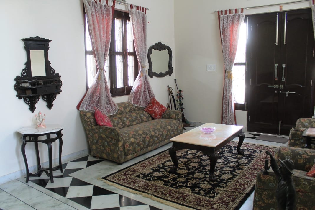 House of a thrid generation army officer we simply believe in upholding our tradition to it's utmost value. The bunglow has 5 rooms in which 2 rooms also constitute as a studio apartment as well if needed. The bunglow is located in serene and a calm enviornment located in a peaceful area with classic aravalli mountain view. The spacious drawing room withs fire place and beautiful curved high ceiling will take you back to the 18th century vintage army bunglow.