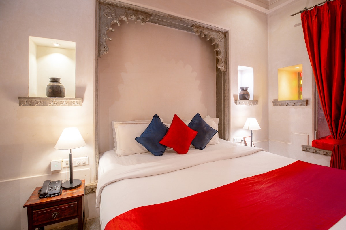 Unwind at this stunning spacious room lovingly built with stone floor, antique detail and furniture for a luxurious yet charming feel located right in the heart of the city. Brand new, very clean room with a private bathroom and kitchen space. This place is 2 minute walk from ambrai ghat and other major attractions of Udaipur. We know how important it is to feel like home, comfortable and relax Connect -9928669922