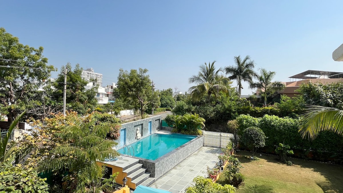 2卧室舒适别墅,带泳池+草坪,靠近巴迪湖@Udaipur