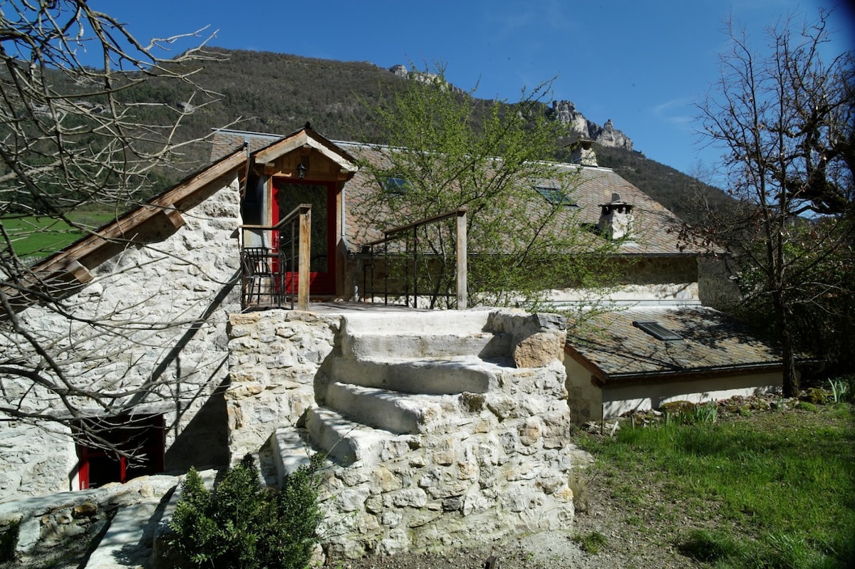 Gîte pour 4 sous les toits d'une belle bâtisse en pierre en plein coeur des gorges du Tarn. Situé entre la rivière en contrebas (le Tarn) et un beau jardin en terrasse. Lumineux et chaleureux, entièrement rénové. Petite terrasse et grand jardin. Ménage à faire avant le départ, sauf si l'option ménage a été demandée lors de la réservation (montant sur demande, règlement sur place). Gîte pour 8 indépendant au premier étage de la bâtisse. Réservations du samedi au samedi du 11 juillet au 22 août.