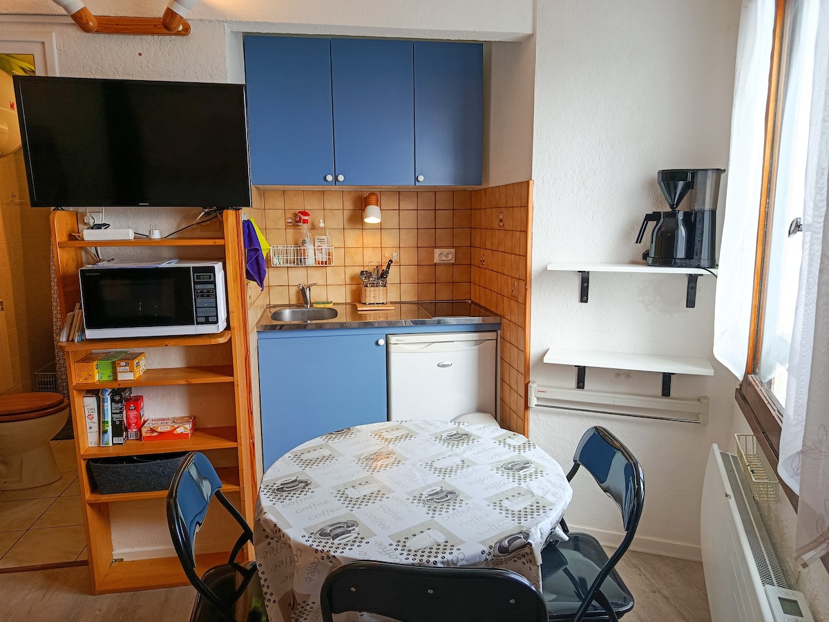Appartement avec balcon et superbe vue pistes. Accès direct à la galerie marchande et aux pistes par ascenseur, tout à pied et proximité GR10. 23m2 cocooning idéal pour 2 adultes et 2 enfants (ou 4 adultes), situé dans la résidence Super Arlas 4ème étage. Agréable pièce de vie avec cuisine, TV, micro ondes et plaques de cuisson, frigo, cafetière filtre, appareils raclette et fondue. Une banquette lit 160 + 2 lits 90. Couvertures et oreillers fournis. Local à skis.