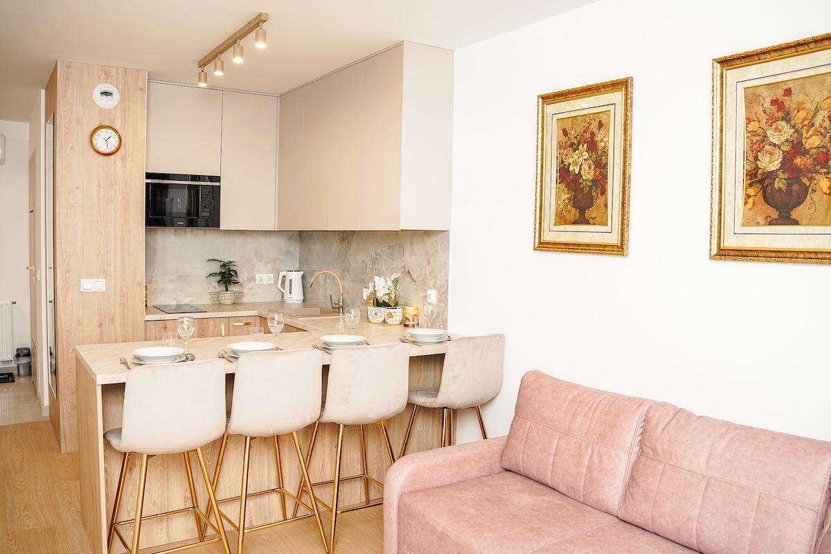 Zapraszamy do nowego i bogato wyposażonego apartamentu na ul. Źródlanej 45. Apartament posiada jedną sypialnie (podwójne łóżko małżeńskie), aneks kuchenny połączony z salonem i łazienkę z prysznicem. Na wyposażeniu znajduje się piekarnik, mikrofala, zmywarka, a także ekspres do kawy, a w łazience do Państwa dyspozycji jest pralka. Osiedle Źródlana to świetna lokalizacja dla rodzin z dziećmi (w okolicy place zabaw, ogrody żywiołów. *ceny uzależnione od sezonu i długości pobytu