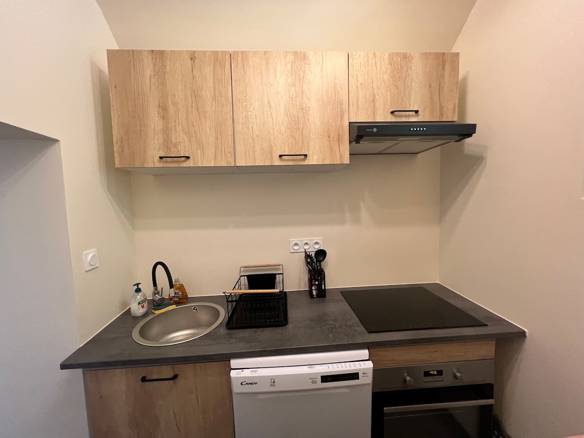 Classé 2 étoiles par un organisme agréé, ce logement parfaitement situé offre un accès facile à tous les sites et commodité. Au rez de chaussée salon/salle à manger avec coin cuisine. Poêle pour le chauffage, canapé convertible 2 personnes. Salle d eau équipée. Lavabo douche, toilettes séparés. A l'étage une chambre avec lit double, un canapé pour s'y reposer et coin bureau. En extérieur : cour privative équipée d'un salon de jardin et d'un barbecue. Fibre, wifi, couverture 4g.