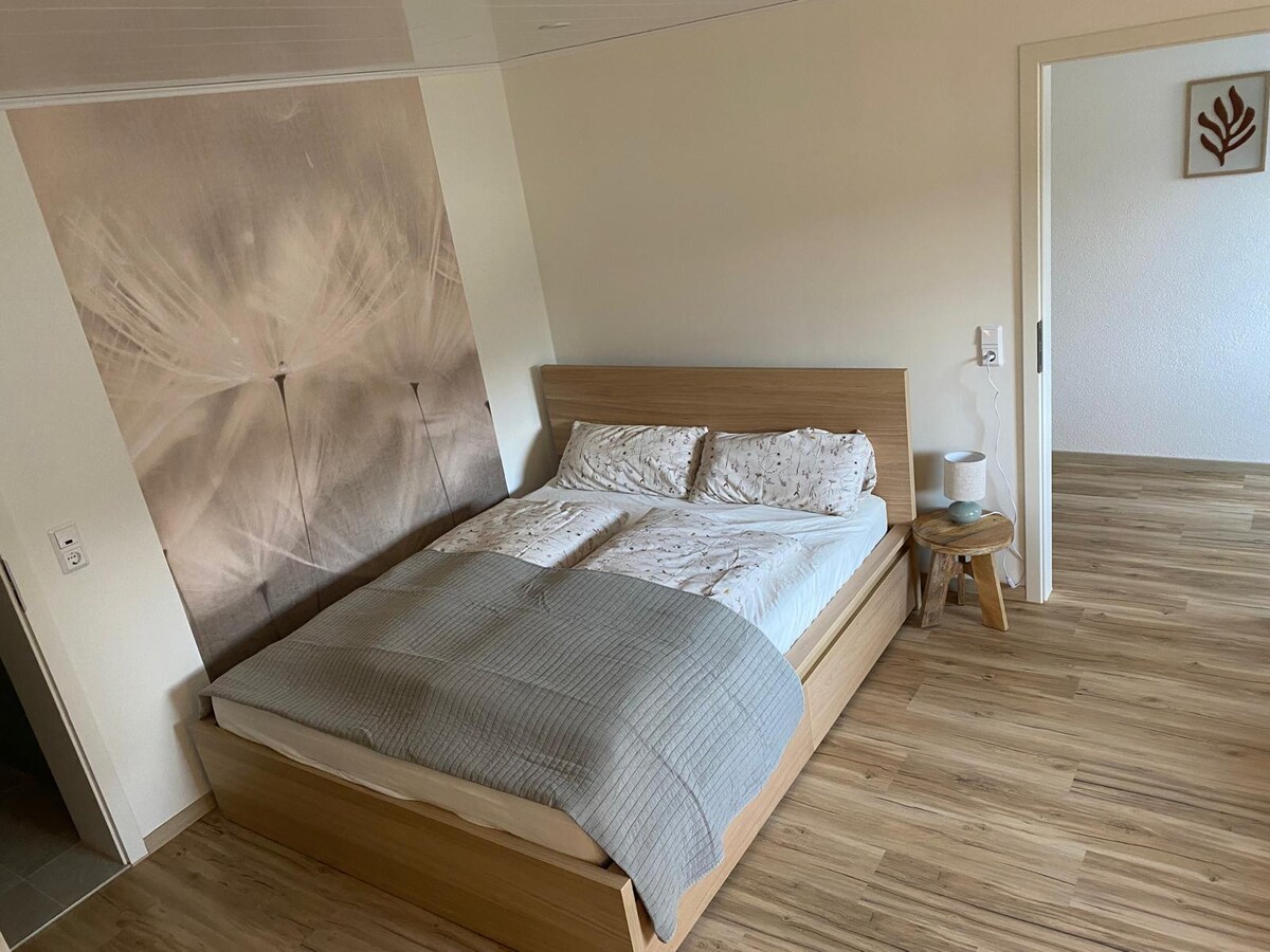 Comfortably furnished ** apartment (2 rooms, kitchen, bathroom, balcony) on the 1st floor on the outskirts of Niederburg, 50 meters from the forest. Access is from the car park through the garden via an external staircase. On sunny days, the small balcony and garden invites you to linger outdoors or for a leisurely barbecue.
