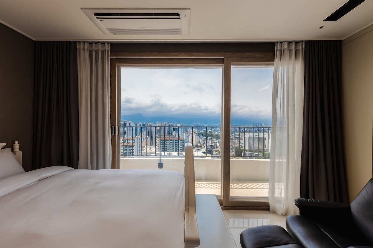 ★ Longstay discount automatically applied ★ • 17th Floor/1.5 room with a south-facing balcony and east-facing window. • Best view lines in Sokcho. enjoy Sunrise over the East Sea, Cheongcho Lake, Seorak Mountain, and city night view directly from the room. • 20 min walk to Sokcho Intercity Bus Terminal / 5 min walk to Sokcho Fish Market. • All touch points & floor are disinfected with alcohol after cleaning. • LG U+ OTT available (your own personal account) • Cooking is NOT allowed in this room.