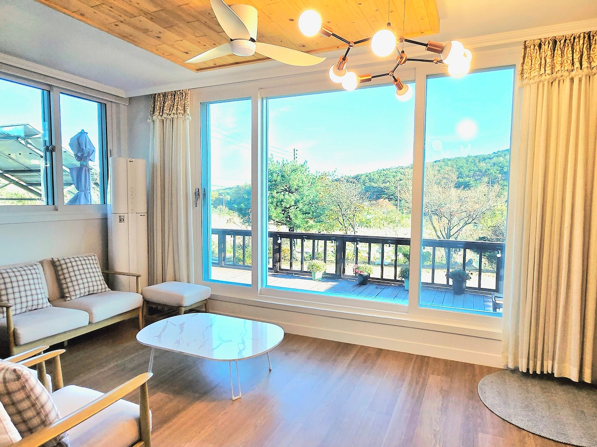 Host lives on the first floor, the guest accommodation on the second floor has a separate front door for guests. It is a place where hammocks are installed on the 495㎡ lawn, you can take a walk with pets, and provide optimal rest for those who want to rest quietly. If you bring barbecue parties and camping tools on the grass and balcony, (15,000₩ per barbecue) you can camp outdoors, pick up persimmons and chestnuts in autumn, and walk along the village trail (path) will also be a good memory.