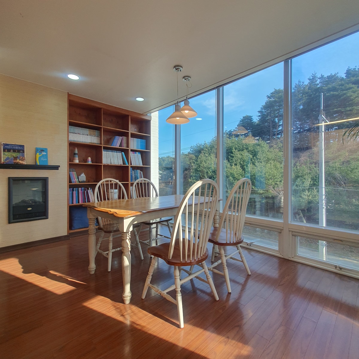 - Gorgeous lake view in the middle of mountain. - Very cozy and calm place which is out of noisy circumstances. - However, about just 10minutes drive from the main sea beach and about 25 minutes drive from Gangneung Ice Arena, Gangneung City. - You can relax with lake view and get refresh after tour. - Walking along the lake in front of the house, cracking/gathering chestnuts around house in autumn.
