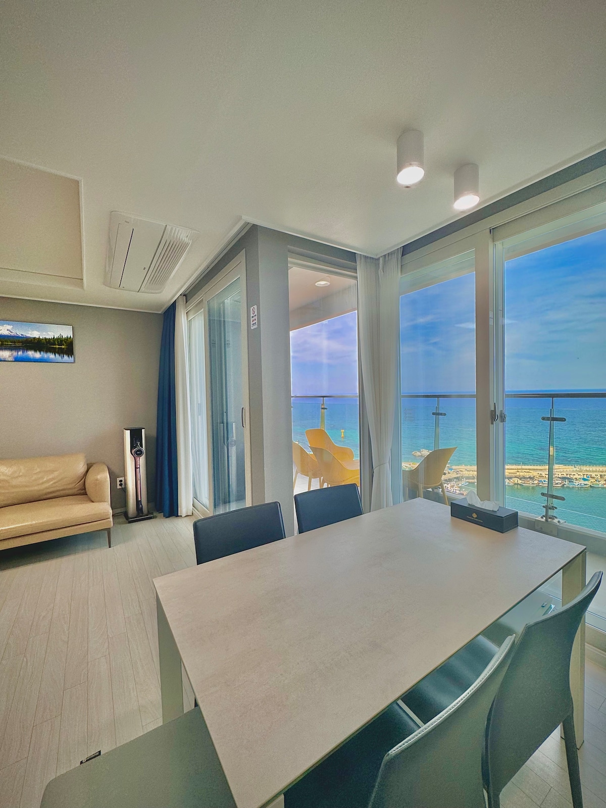 🌊 Cheongcho Lake View Residence – 3Room Royal Suite 🏖️ Exclusive suite with rare views of the East Sea and Cheongcho Lake Perfect for families. 🛏️ All bedding is replaced with fresh sheets after every stay, ensuring a clean, hygienic space 💙 🍳 Light cooking allowed. For strong-smelling food, use the 1F Cooking Studio (₩3,000 per person), equipped with tableware. 💦 Guests enjoy free use of the pool (Nov–Apr closed) and hot spring sauna (Airbnb only). Relax and enjoy the views 🌅