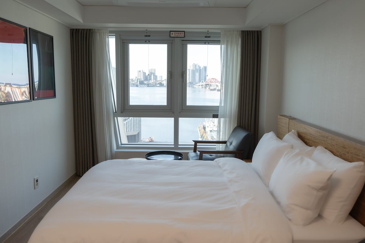 #1 25楼/退房:12点/速海5分钟/蓝色天空角落房/窗户开启/速海岛.蔚山巴威.清草湖景/Netflix