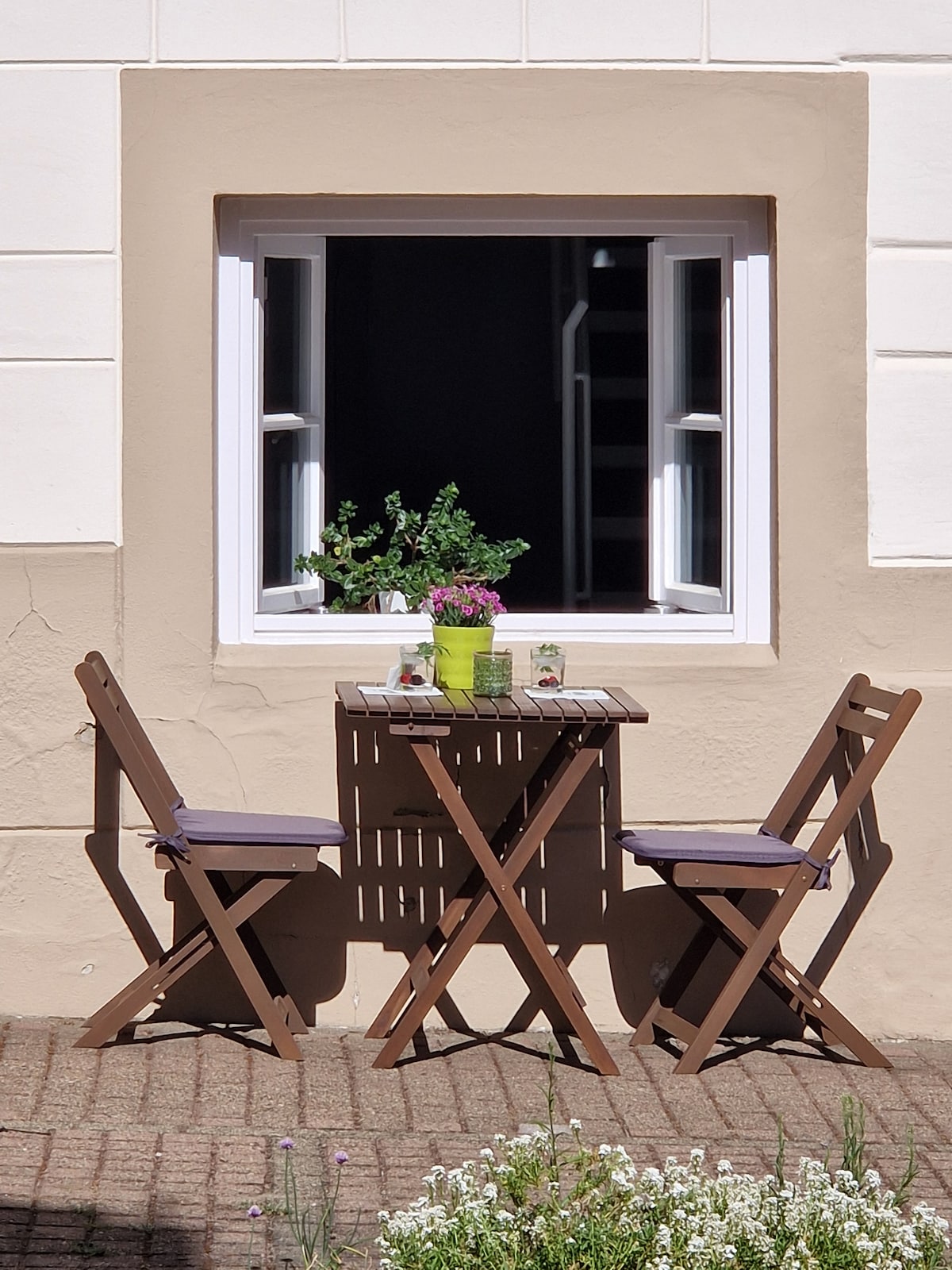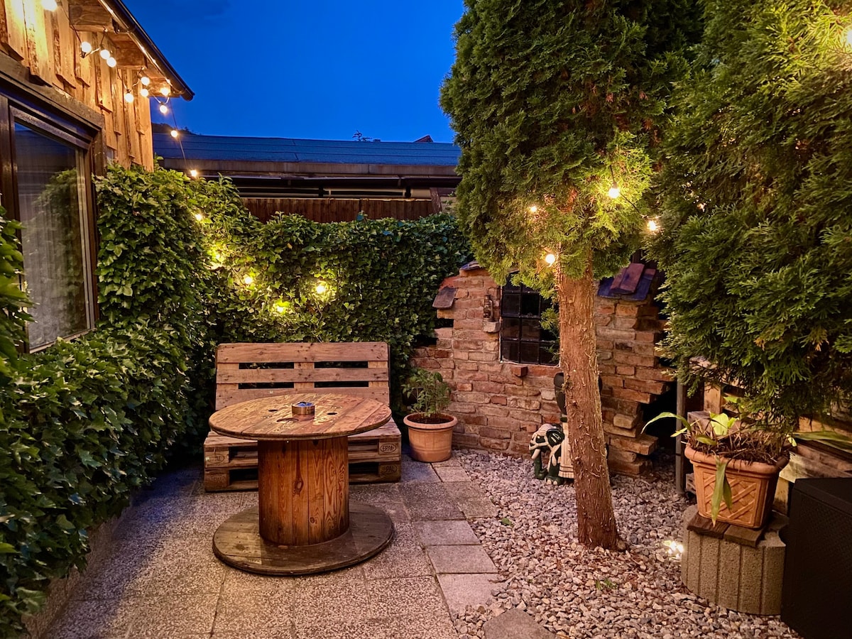 Unsere charmante Galeriewohnung liegt im Erdgeschoß und erstreckt sich über zwei Etagen – die Treppe ist bequem. Direkt am Schlafzimmer liegt das große Bad. Das Wohnzimmer lädt mit seinem elektrischen Kamin zu behaglichen Stunden ein. 1 m dicke Außenmauer sorgt für ein besonderes Wohngefühl und ein angenehmes Raumklima. - Parkplatz direkt am Haus - nur 13 Minuten zu Fuß vom Bahnhof - nur 300 m bis ins Zentrum mit Restaurants, Cafés und Einkaufsmöglichkeiten - Fahrradkeller