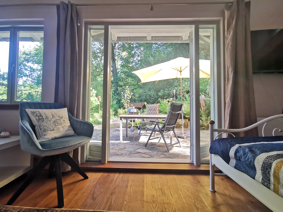 Gönn dir eine Pause und entspann dich in dieser friedlichen Oase. Auf 540 hm liegt unsere kleine, aber feine Ferienwohnung. Mit Blick auf die Grumbacher Teiche und an den Ausläufern des Bocksbergs gelegen, könnt ihr einfach mal die Seele baumeln lassen. Wanderwege starten direkt vor der Haustür. Der Badeteich liegt wenige Meter von der Wohnung entfernt. Ein Wasserspielplatz in unmittelbarer Nähe lädt auch die kleinsten Entdecker ein, den Harz näher kennen zu lernen.